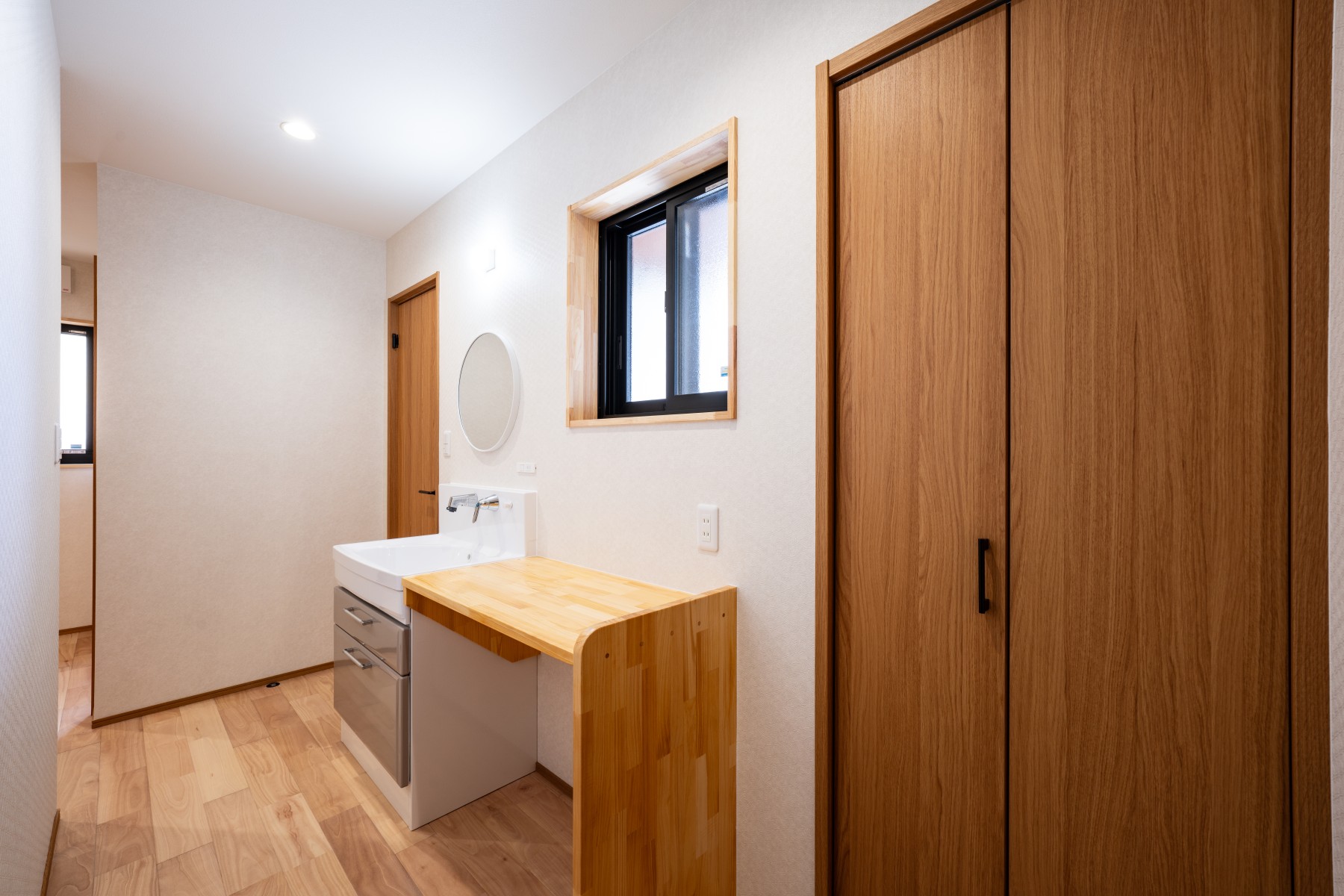 脱衣室や浴室ともスムーズにつながり、帰宅後の着替えや洗濯も自然な流れで行えます。