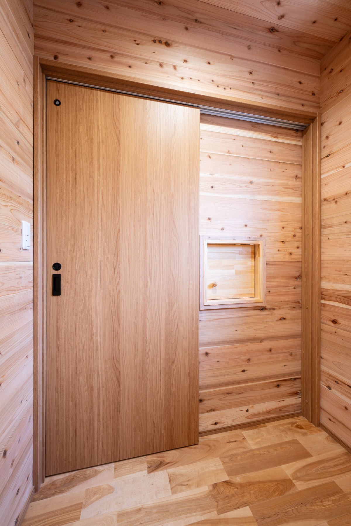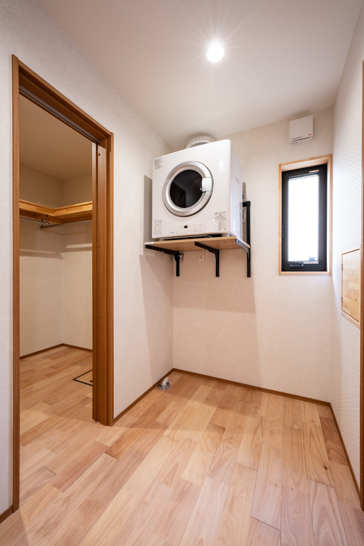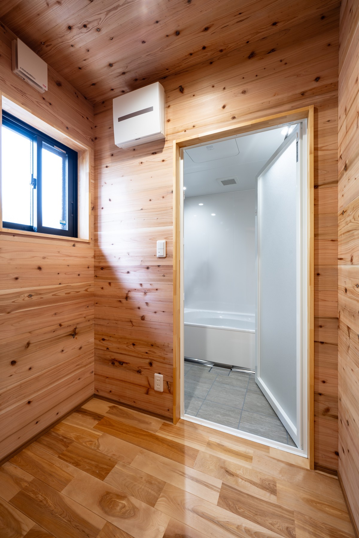 実は、脱衣室の方にも開口窓があります。無垢材の壁に囲まれて、あたたかみがあり、空気もきれいです。