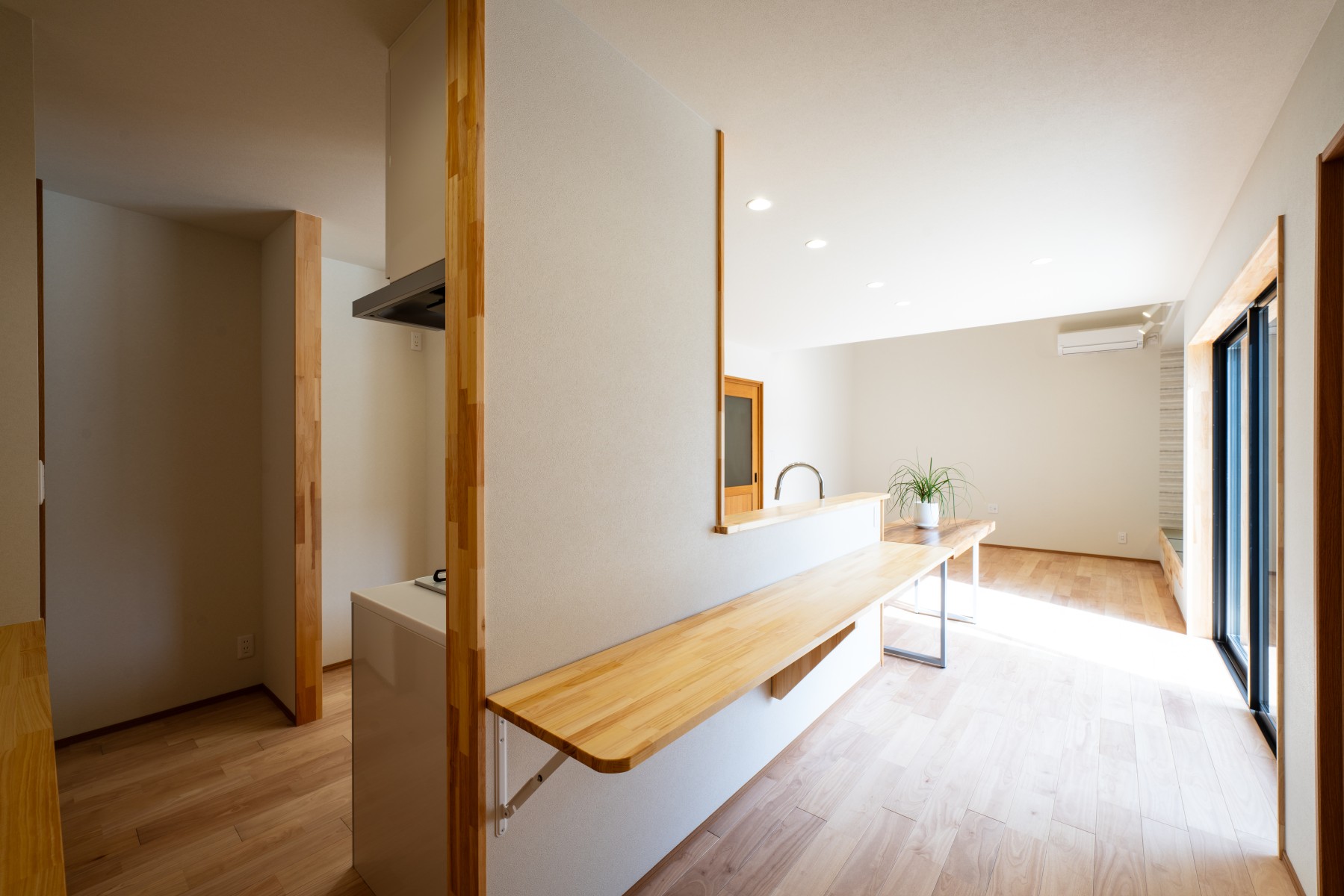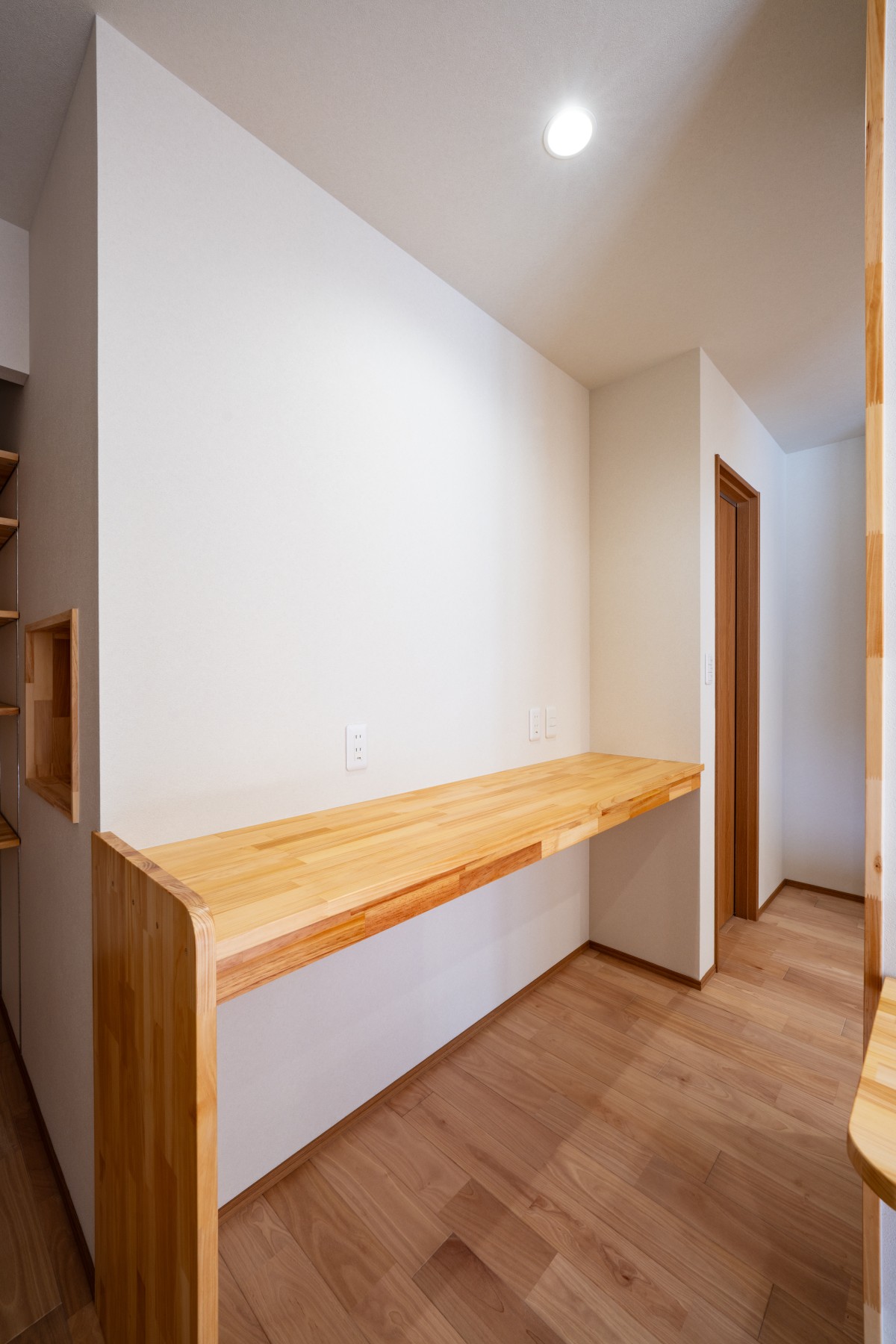 キッチン横に設けた造作カウンター。家事の合間の作業スペースや、お子さまの学習スペースとしても活用できます。