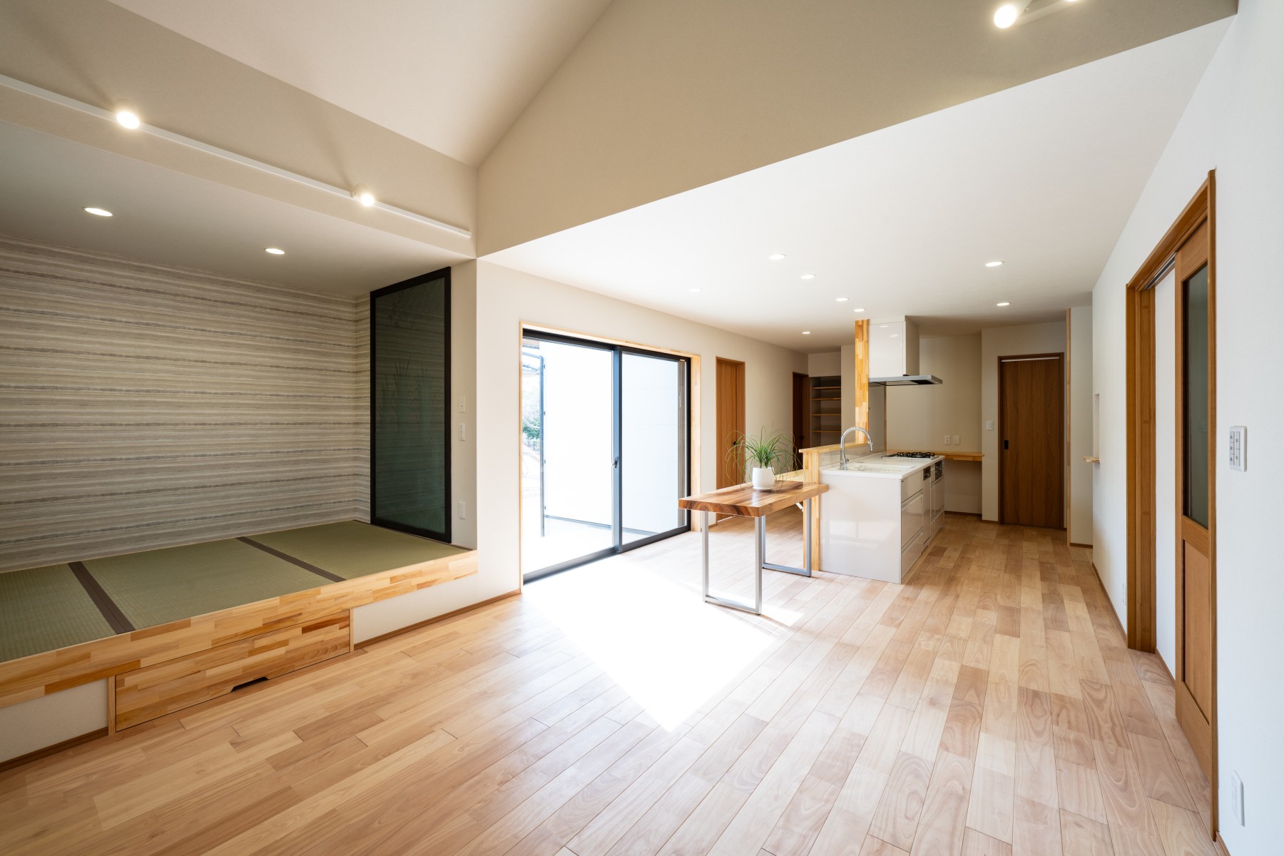 LDKから庭へとつながる設計で、家族の時間が自然と広がる住まいが完成しました。